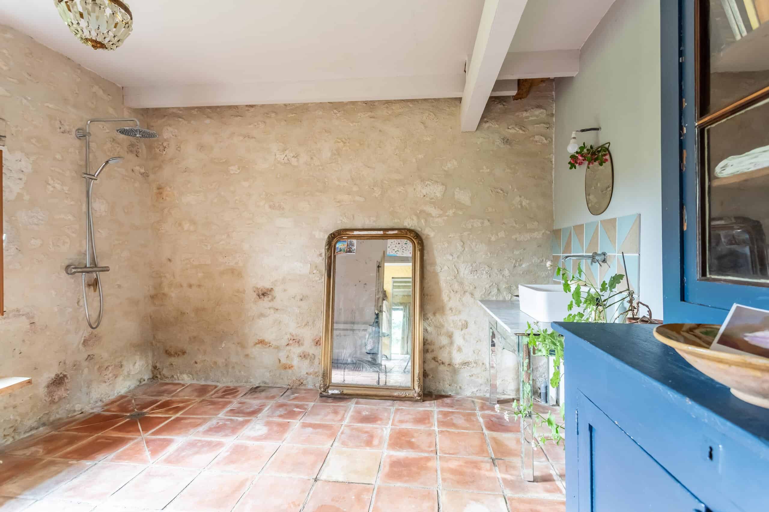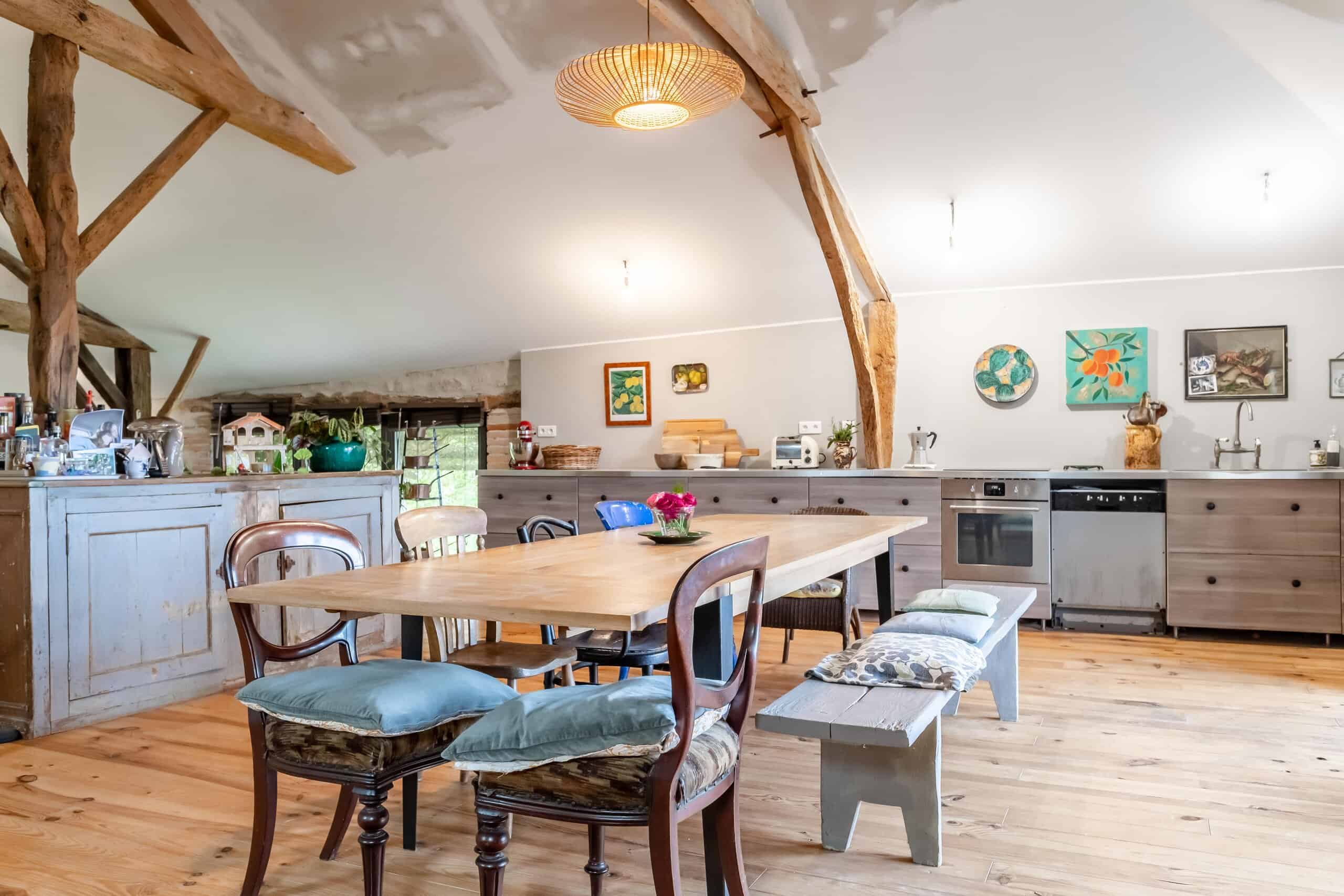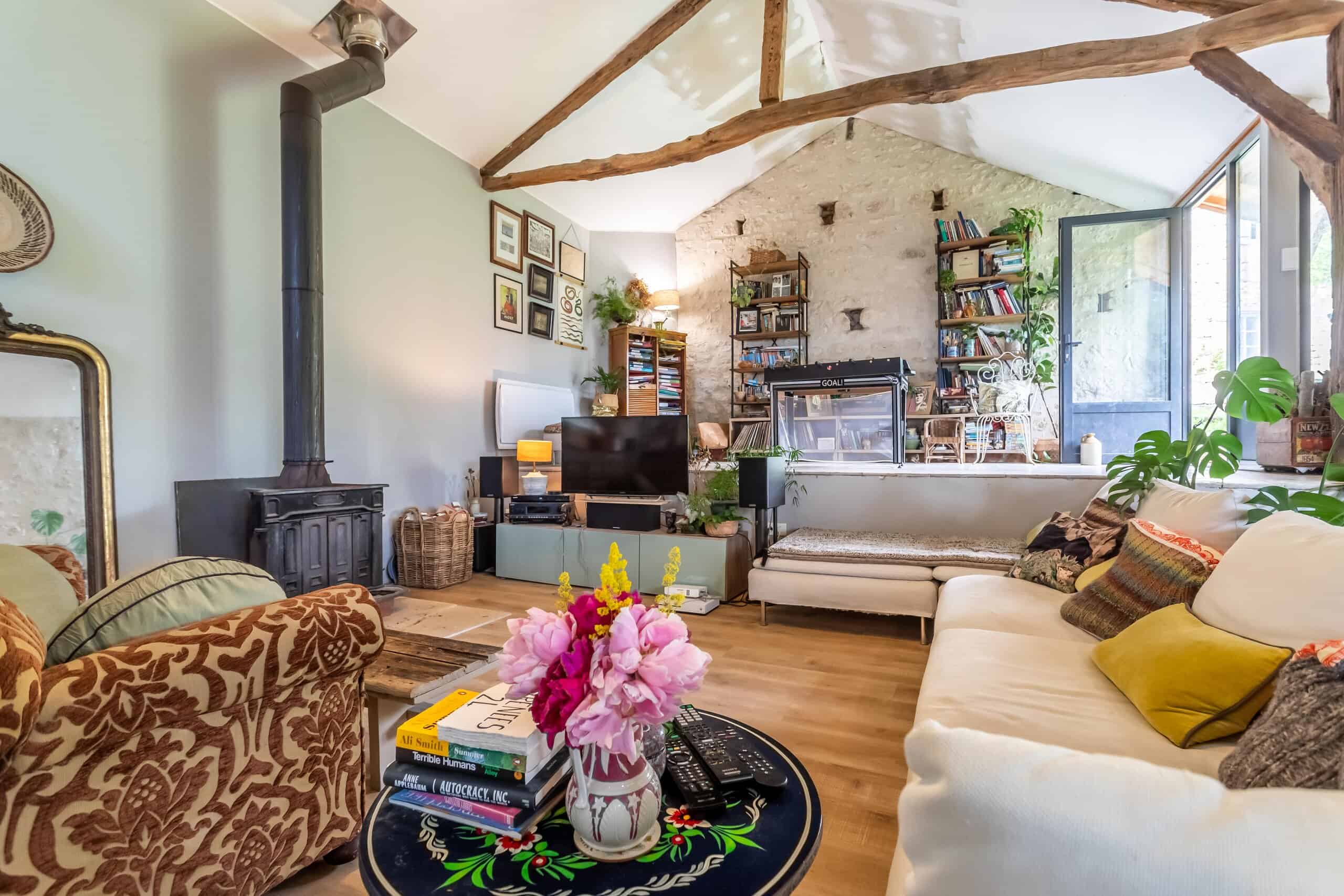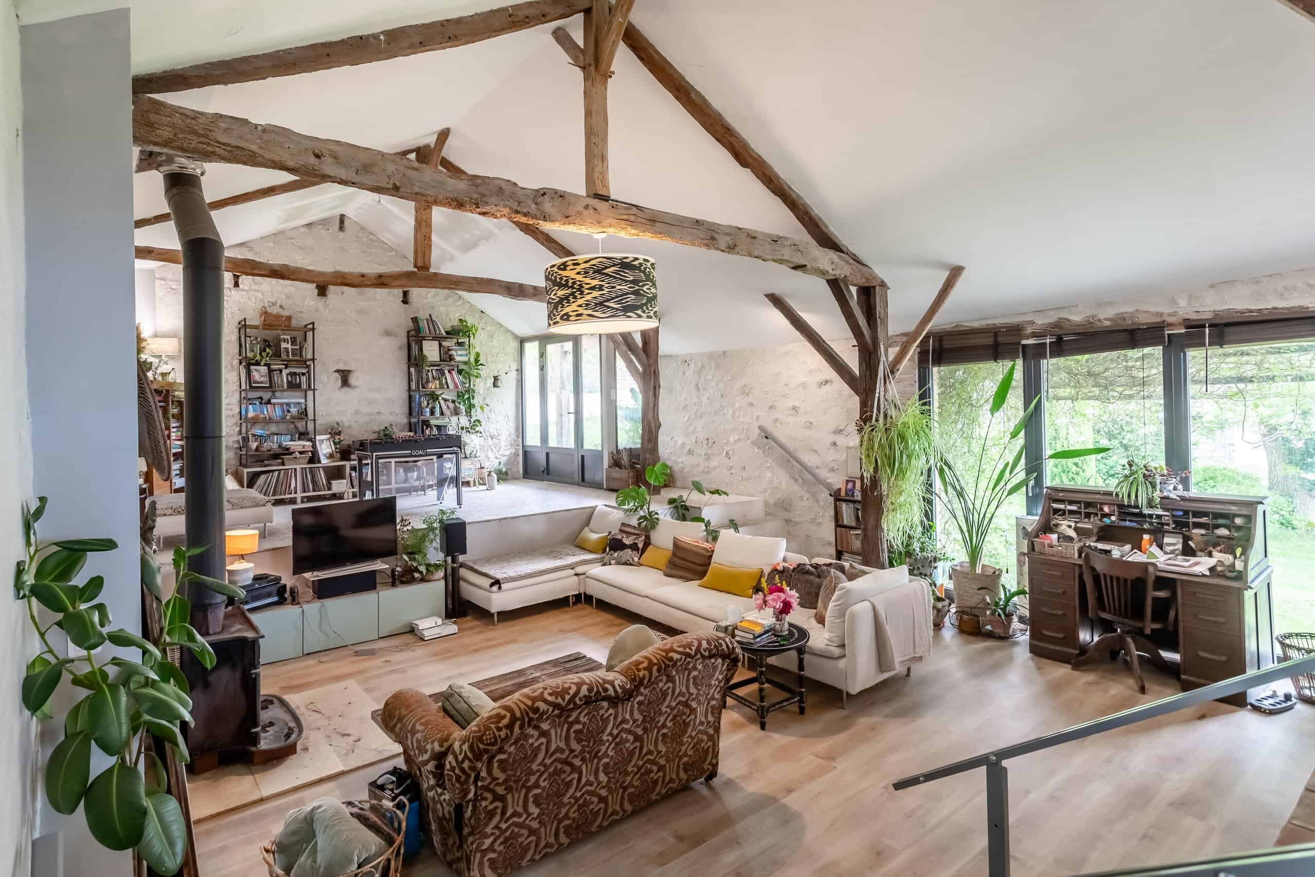 Cette grange en pierre du XIXe siècle a été convertie de manière imaginative pour créer un grand espace de vie ouvert avec des intérieurs contemporains, de grandes fenêtres à double vitrage laissant entrer la lumière, tout en respectant les nombreux éléments d'époque. Avec un fabuleux plafond à poutres apparentes sur toute la hauteur et un poêle à bois, une cuisine moderne équipée avec une cuisinière Rayburn fonctionnant au fioul, grande chambre avec portes-fenêtres donnant sur le jardin avec un sol en terre cuite, une fabuleuse salle d'eau avec des pierres apparentes, le tout décoré avec le meilleur goût possible, ayant subi une transformation substantielle avec de nouvelles fenêtres, un nouveau toit, de nouvelles installations électriques, une nouvelle plomberie, une nouvelle fosse septique, etc... et le plafond de la grange est en train d'être peint au moment où j'écris ces lignes !