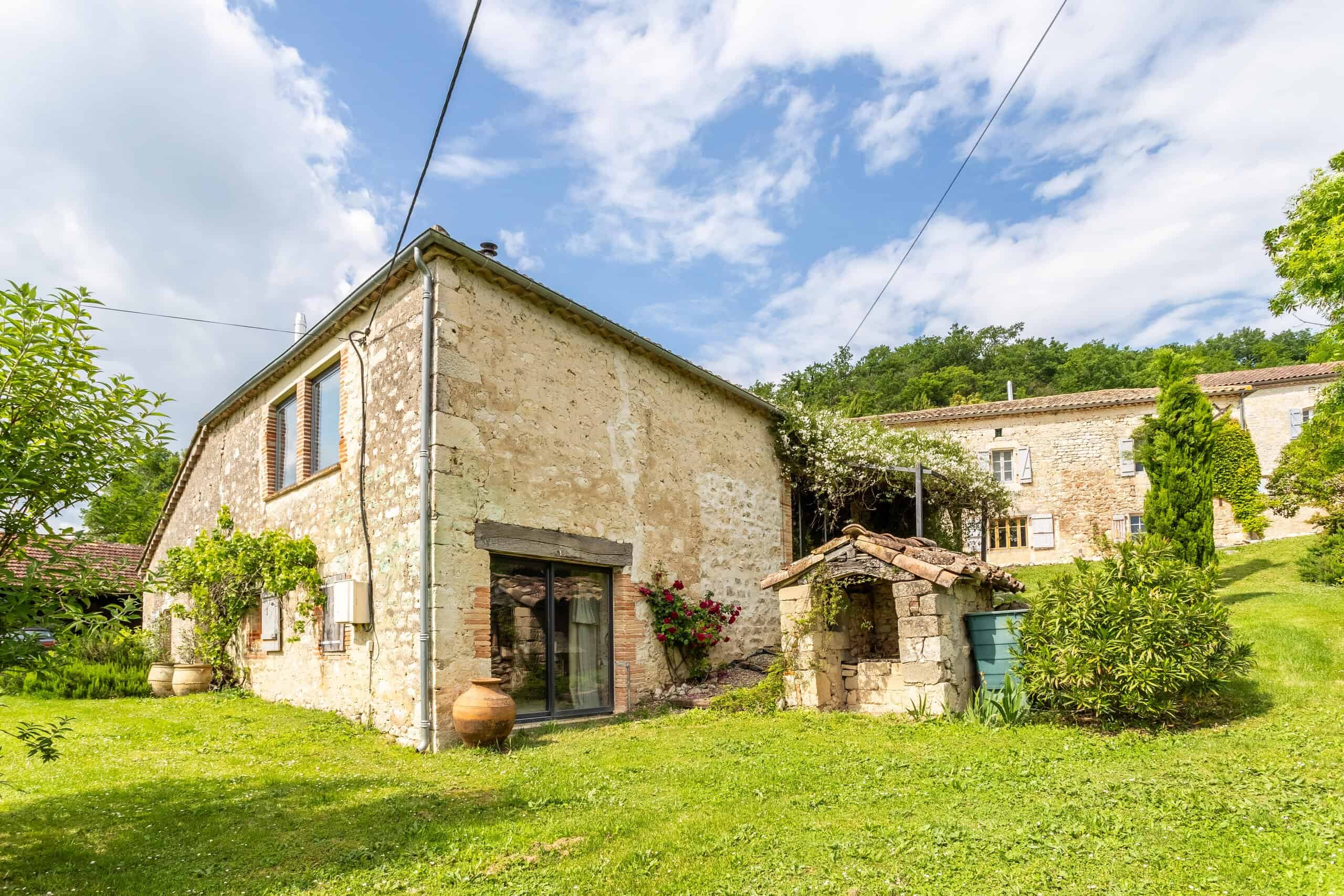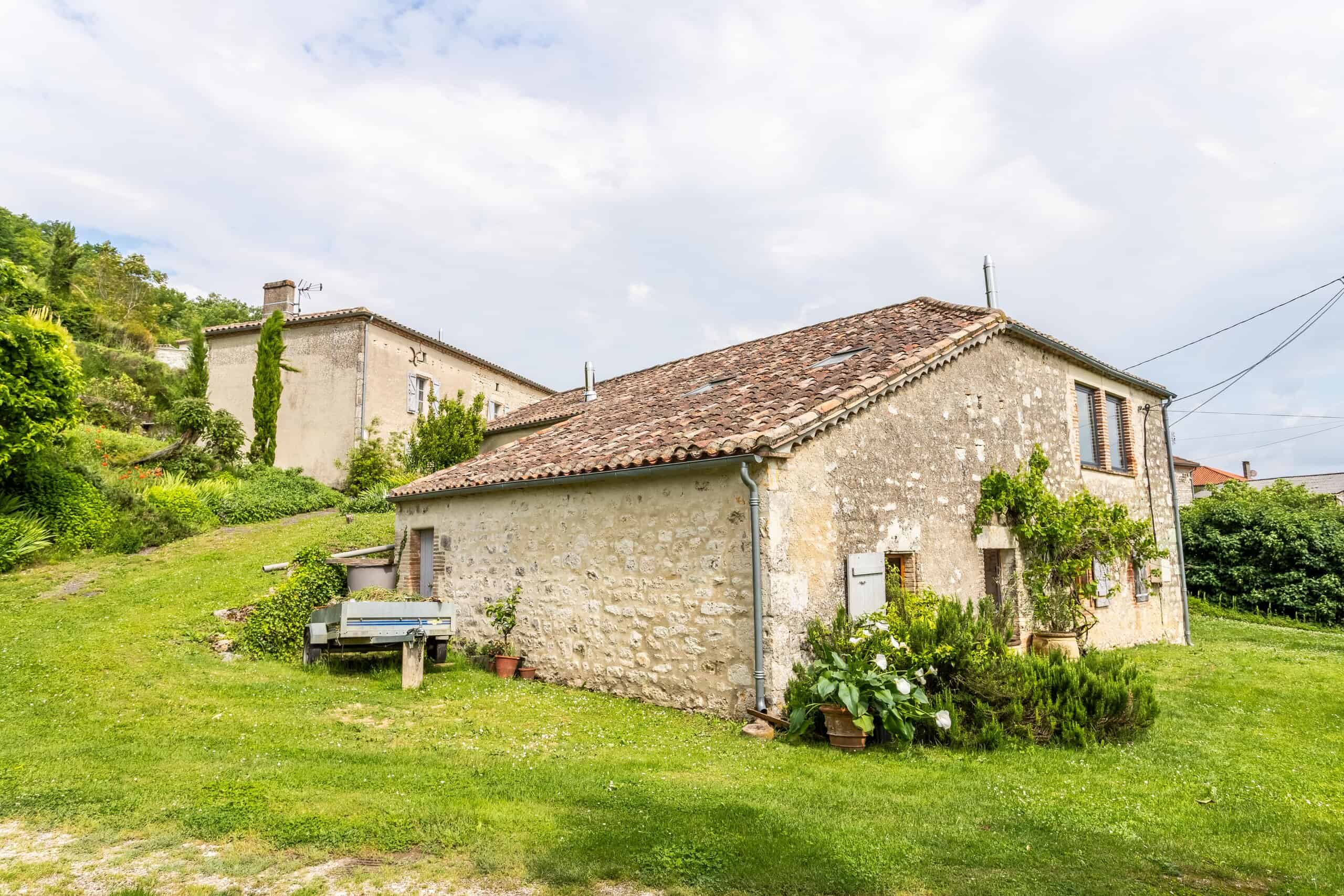 L'ensemble est situé sur un terrain de 3700 m2 avec des entrées séparées, une grande grange ouverte avec atelier, un puits en pierre et les vues les plus spectaculaires que vous puissiez souhaiter, et les villes prospères de Montcuq et Lauzerte à cinq minutes en voiture.