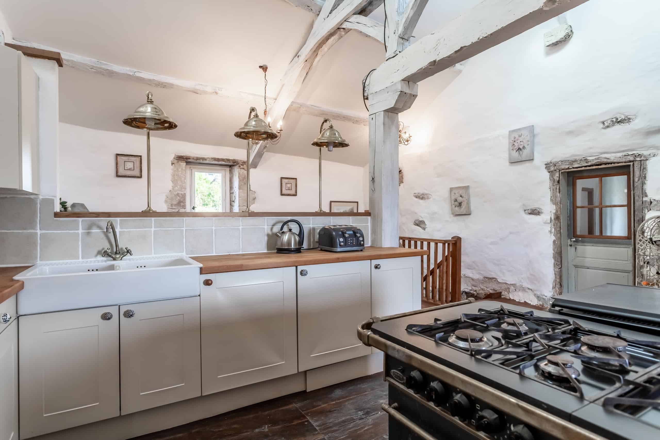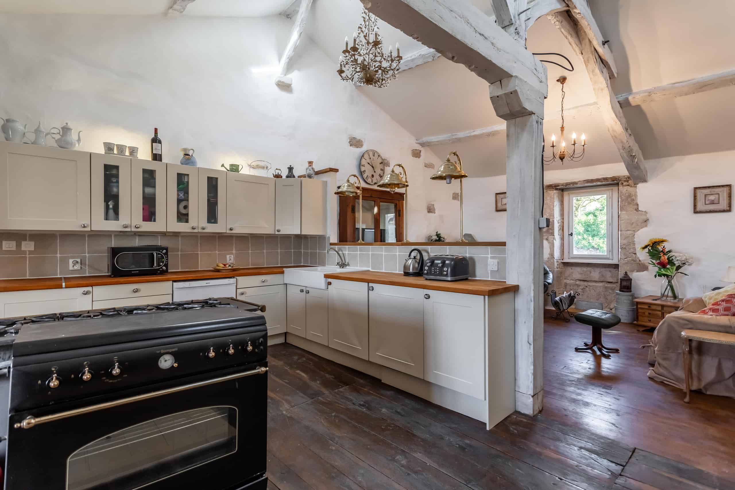 Datant du début du XVIIIe siècle et dotée d'un impressionnant portail d'entrée, elle comprend une grande maison en pierre avec une terrasse couverte donnant sur le jardin, un grand salon/salle à manger ouvert avec des plafonds en cathédrale, une cuisine équipée, des planchers en chêne ancien, une cuisinière à gaz et une fabuleuse cheminée avec un poêle à bûches.