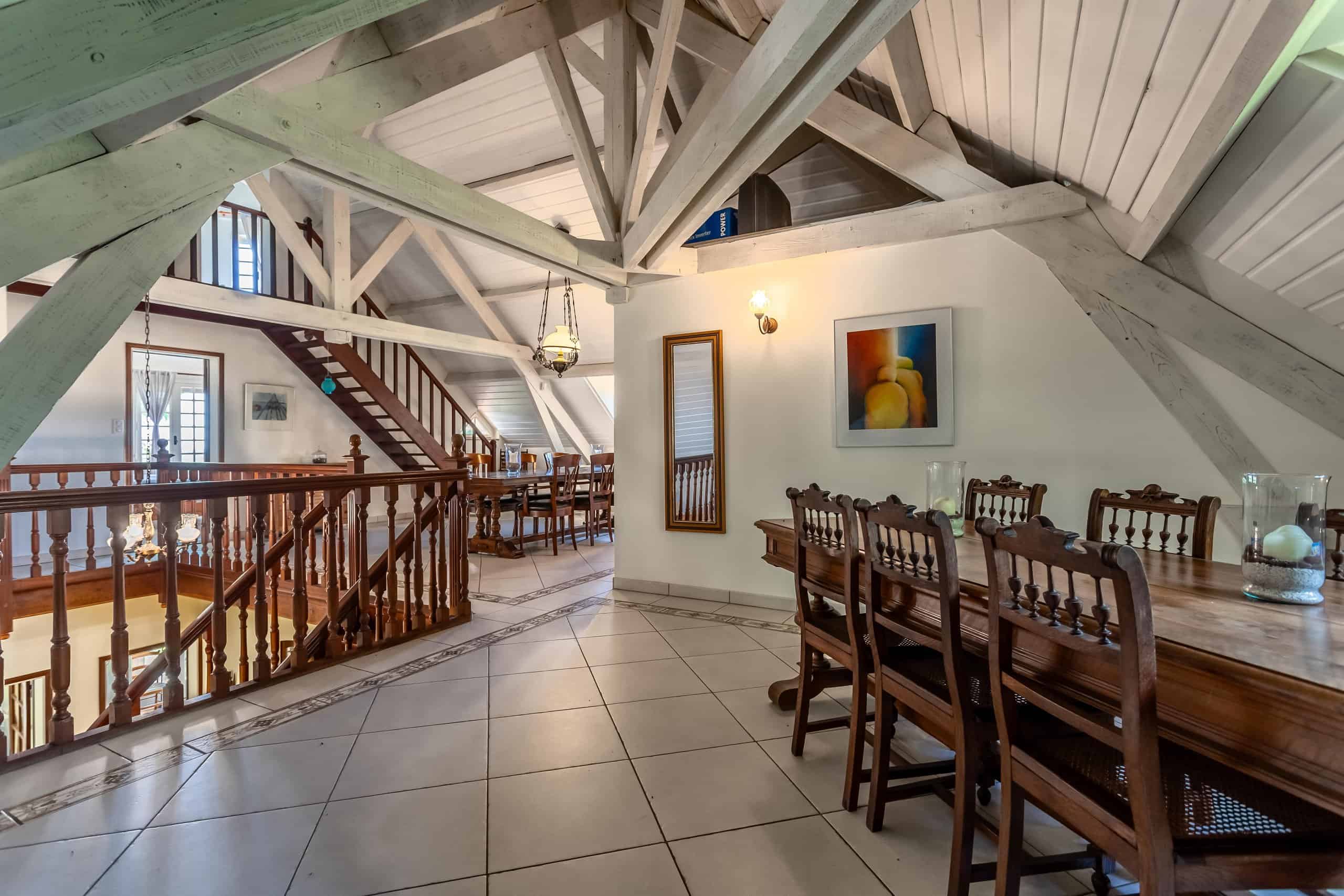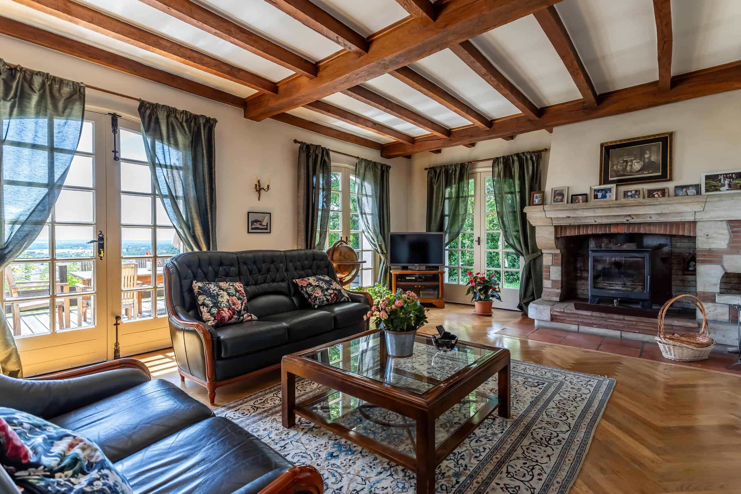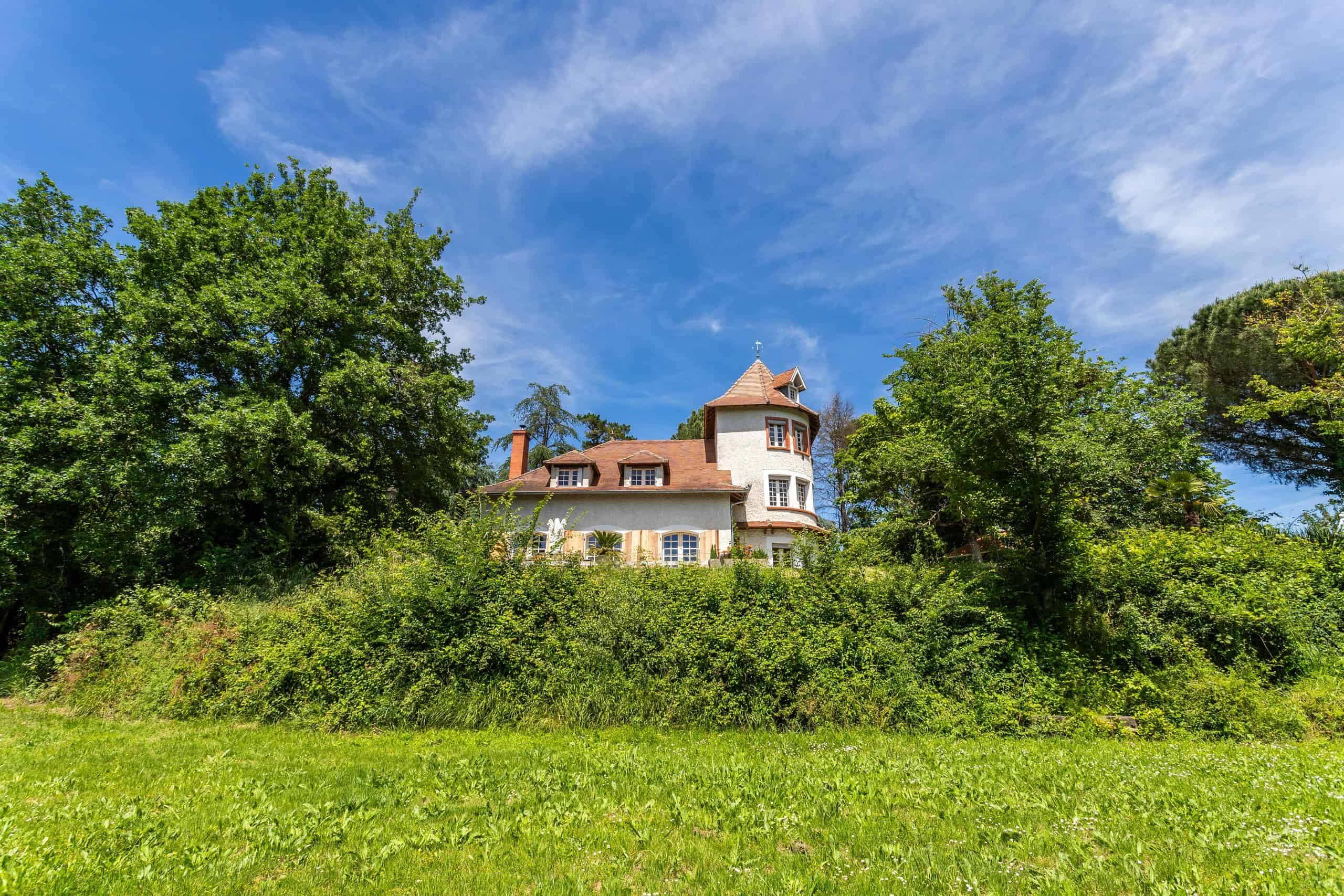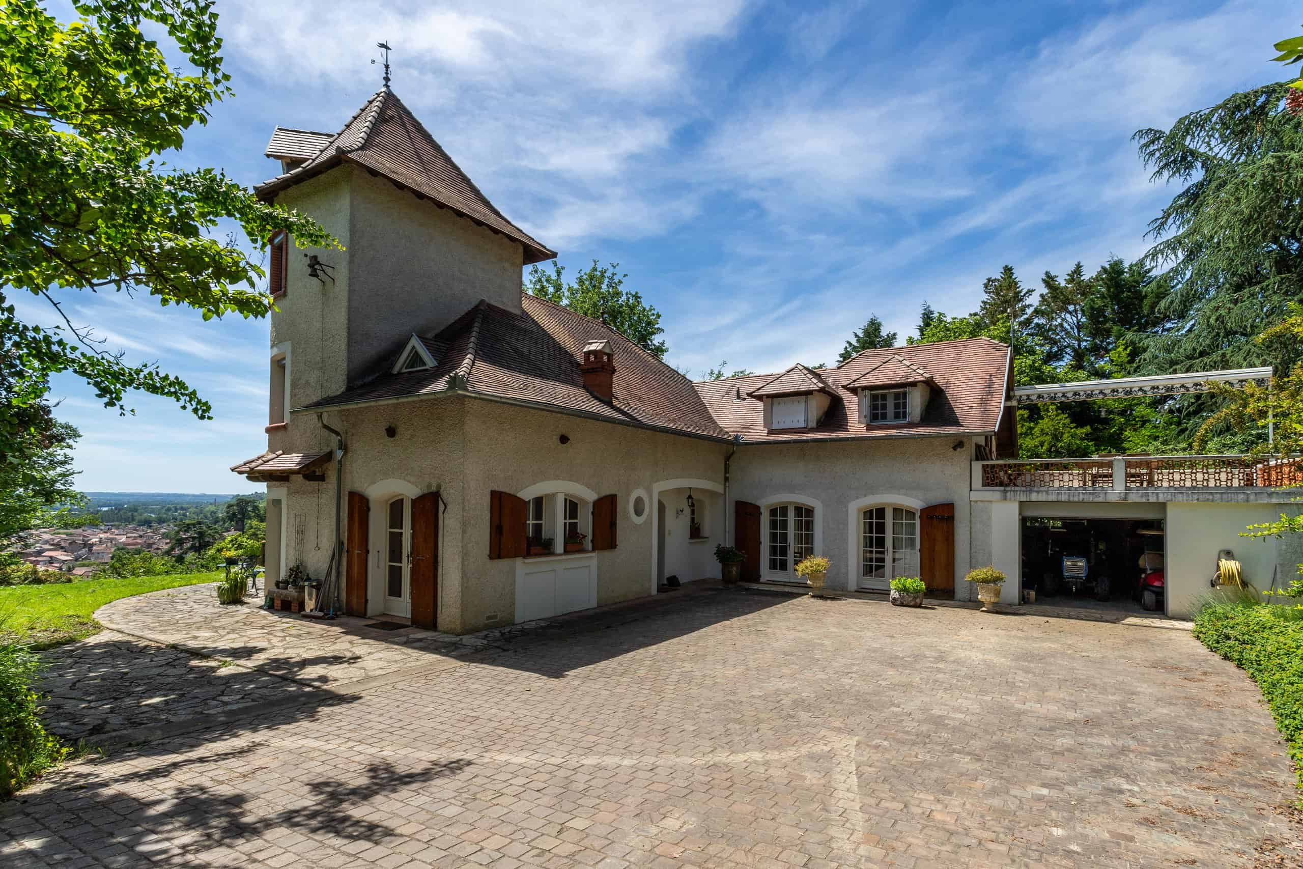 La maison Tower est située derrière un portail électrique au bout d'une longue allée privée, dans un splendide parc arboré. Modernisée et améliorée par ses propriétaires actuels à grands frais, elle comprend six chambres, un grand espace de vie ouvert, des plafonds cathédrales et des poutres apparentes. Le salon est doté d'un sol en chêne à chevrons, d'un poêle à bois et de quatre paires de portes donnant sur la terrasse et les meilleures vues de la ville. Cuisine moderne équipée avec appareils électroménagers intégrés et pompe à chaleur chaude et froide dans toute la maison.