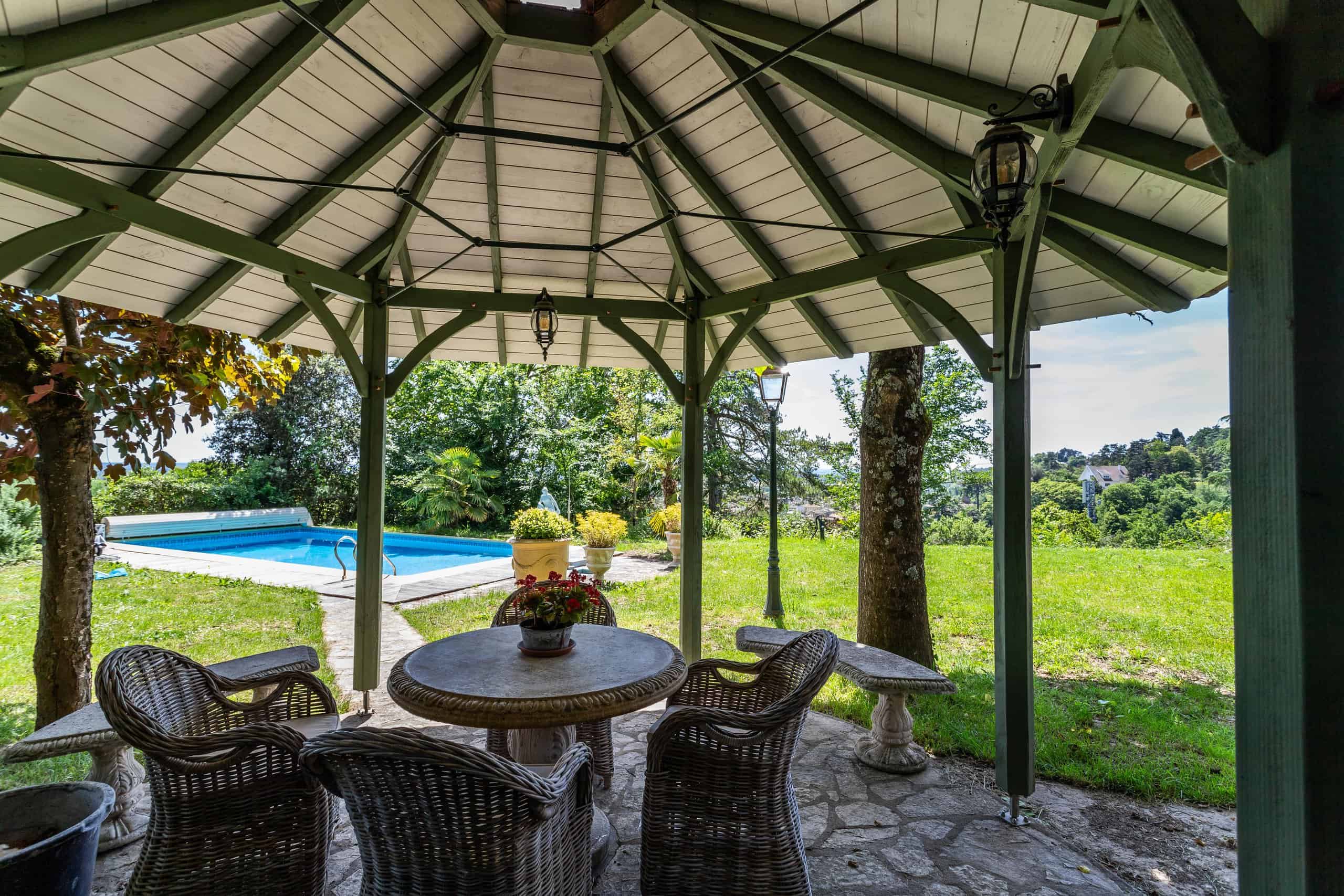 Grand garage et atelier, abri séparé pour deux voitures, tous équipés de bornes de recharge électrique, piscine de 10 x 5 m, pigeonnier utilisé comme salle de pompage et le plus idyllique gazebo couvert pour les apéros. Le tout dans un cadre très privé et très calme.