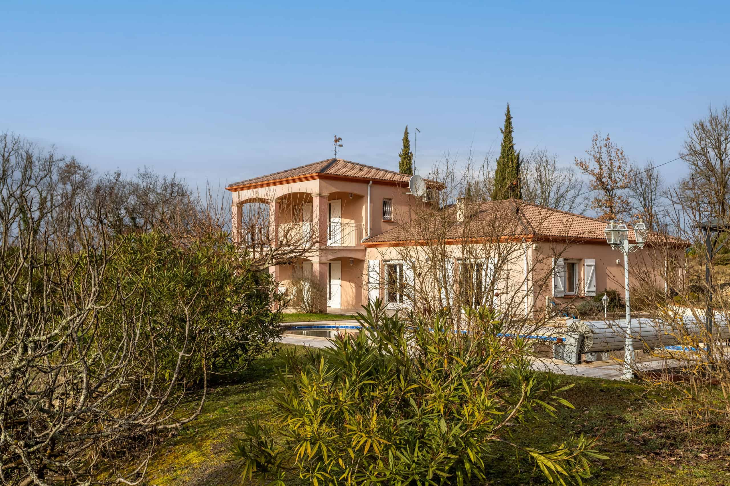 House, land, pool.
