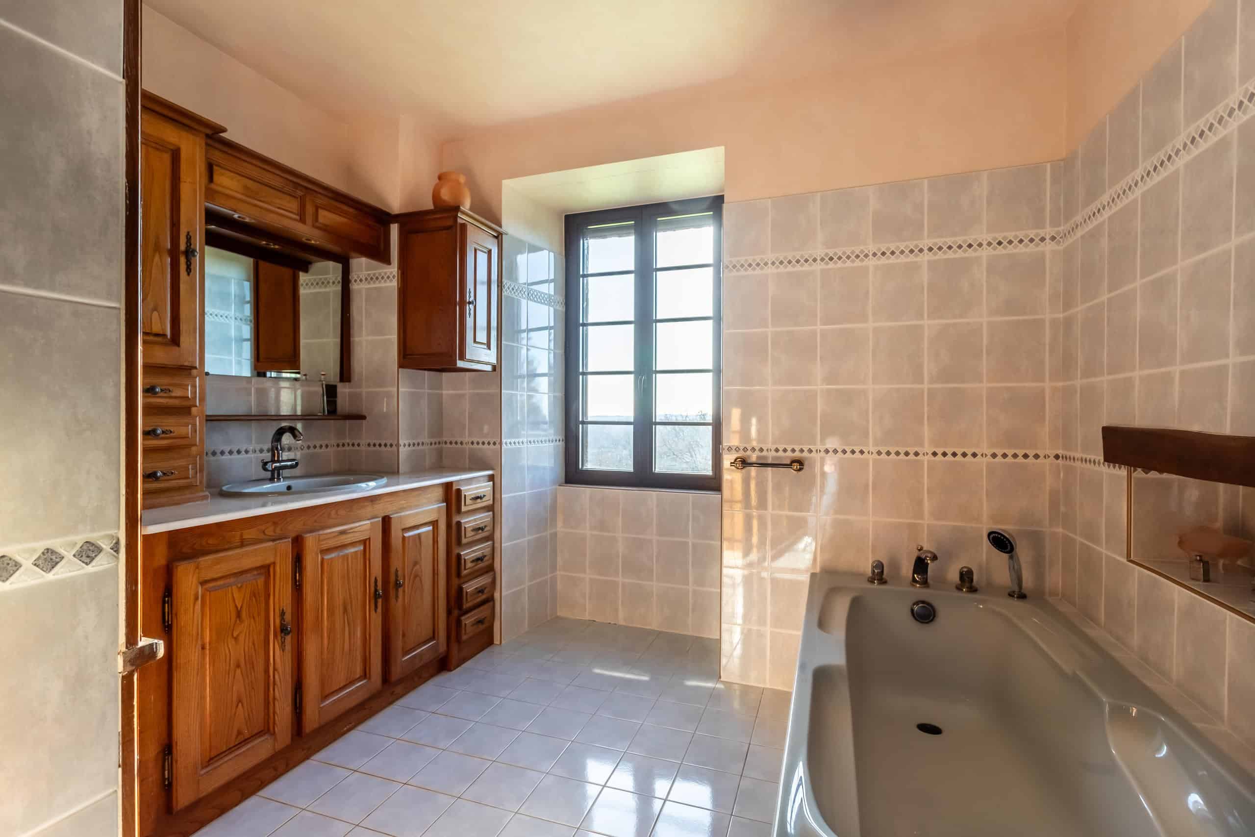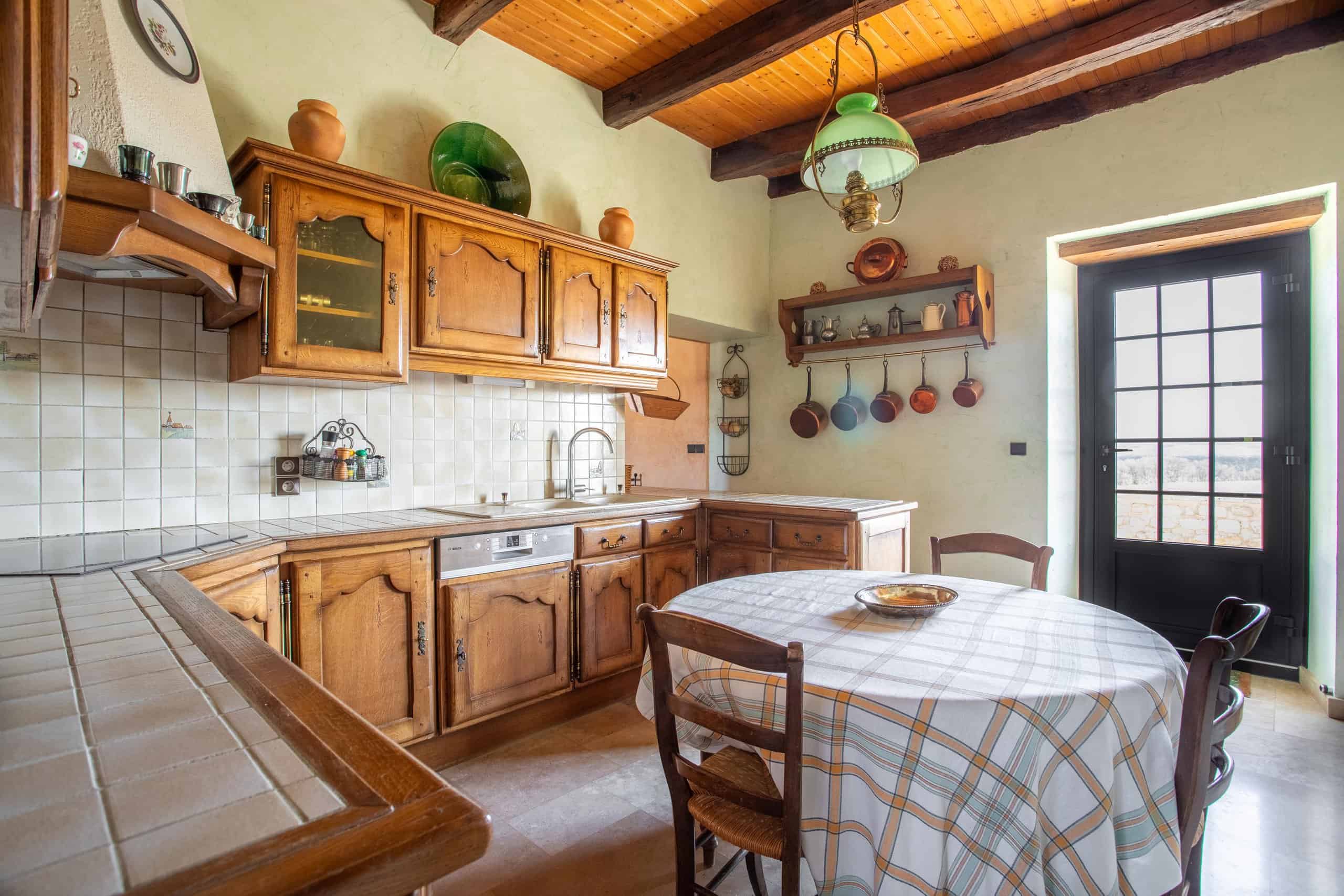 Comprising of the original stone farmhouse and pigeon tower, dating from the 1820s, with oak fitted kitchen, sitting room with beamed ceiling and large open fireplace, with aluminium windows and oil central heating.