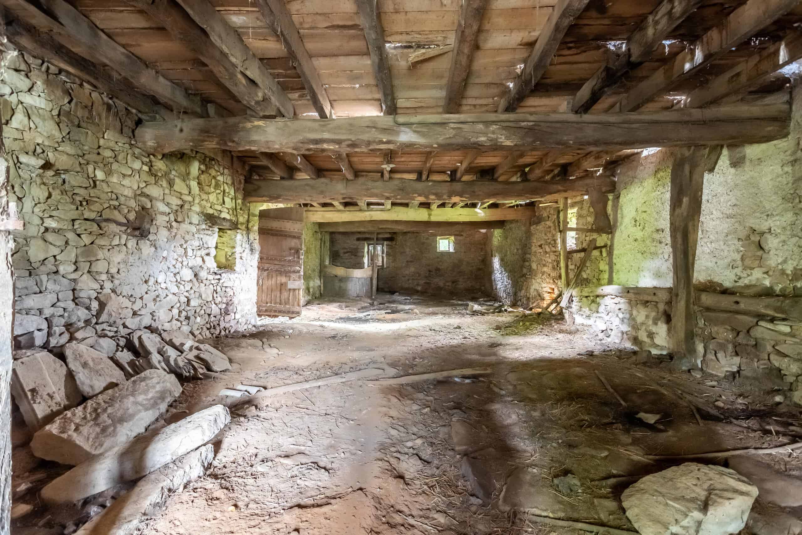 La Gacharié is one of the few remaining barns in this region that has a CU (Building Permit and change of use). It sits in almost a hectare of land and has water and electricity connections close by. The structure is in good, solid condition and has a total internal space of 264m2 on two floors.