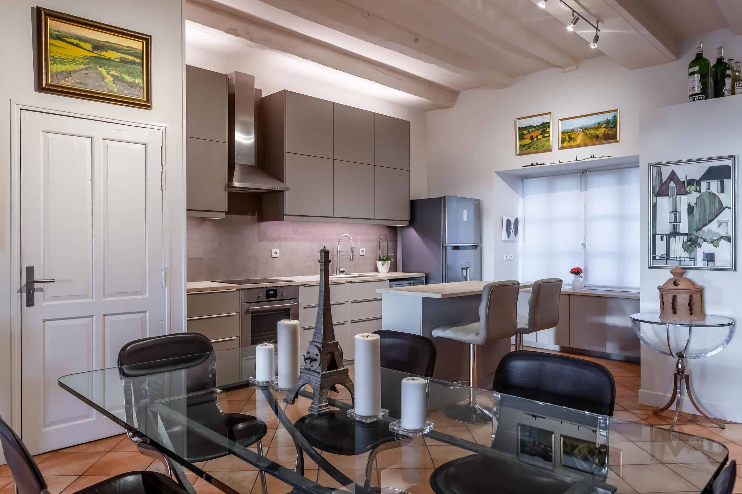 From the charming balcony, enjoy spectacular, far-reaching views across the surrounding countryside. Morning coffee, evening apéros… honestly, it’s hard to imagine a better spot. Inside, the house offers five generously proportioned, stylishly and tastefully decorated bedrooms and three beautifully finished bathrooms, all presented with a cohesive sense of style and quality.