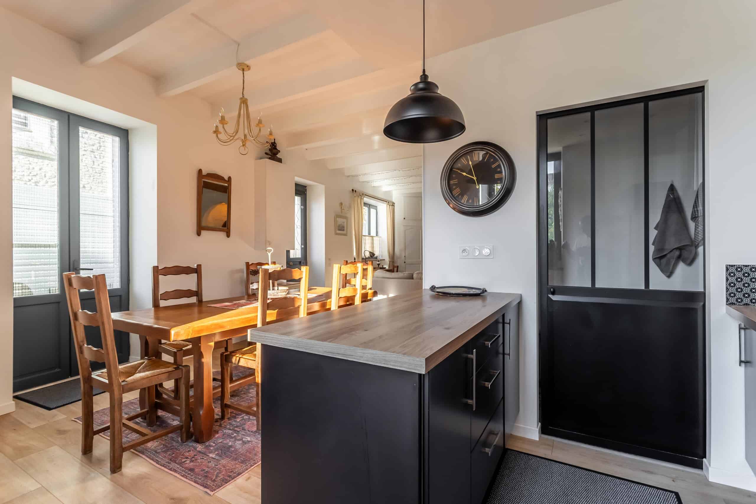 Step through the ancient stone doorway and into a light-filled open-plan living and sitting room, complete with stylish modern kitchen, pantry, and everything you need to whip up a coq au vin (or just chill the wine). There’s a stunning stone archway, beamed ceilings, and a large open fireplace adding warmth and rustic elegance to this generous open-plan space.